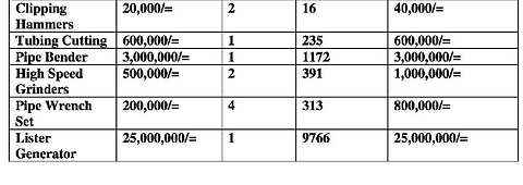 Tool Budget for Gulu, Uganda: